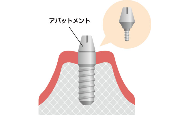 インプラントと骨の結合が確認できたら、インプラント体の上に、被せ物を取り付けるための連結部品(アバットメント)を装着するための処置を行います。